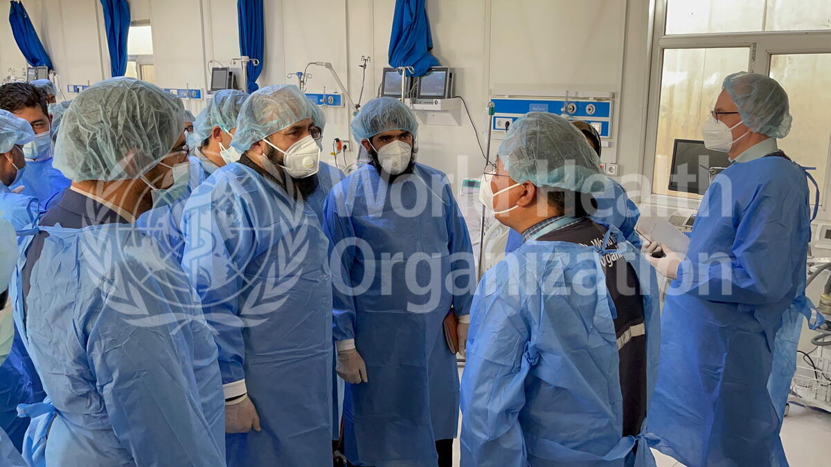 A joint WHO EU team visited the Afghan Japan Hospital in Kabul and met with hospital staff. As COVID-19 cases surge in Afghanistan, the European Union (EU) in Afghanistan supports World Health Organization (WHO) and Healthnet TPO ensure patients are cared for at Afghan Japan Hospital. Health workers remain at the forefront of the pandemic response despite the extremely challenging operating environment. The Afghan Japan Hospital in Kabul is 1 of 4 COVID-19 hospitals supported by WHO and Healthnet TPO with assistance from the European Union (EU) in Afghanistan in responding to this 4th wave of the pandemic.
