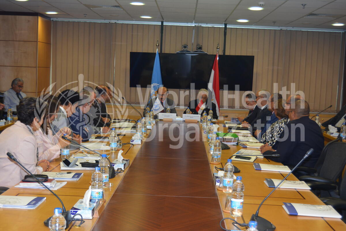 Dr Mahmoud Fikri (center left), WHO Regional Director for the Eastern Mediterranean, met on Tuesday, 3 October 2017, with H.E. Dr Tarek Shawky (center right), Minister of Education and president of the Egyptian Knowledge Bank (EKB), at the WHO premises in Cairo. The meeting aimed at enhancing collaboration in the field of knowledge sharing and accessibility of information resources.During the meeting, a memorandum of understanding was dually signed by the Regional Director and H.E Minister of Education. The MOU will grant a free-of-charge access to EKB collection for all WHO regional Office staff (Egyptian and non-Egyptian) from any place within Egypt.-Title of WHO staff and officials reflects their respective position at the time the photo was taken.Dr Mahmoud M. Fikri passed away in office on 17 October 2017.