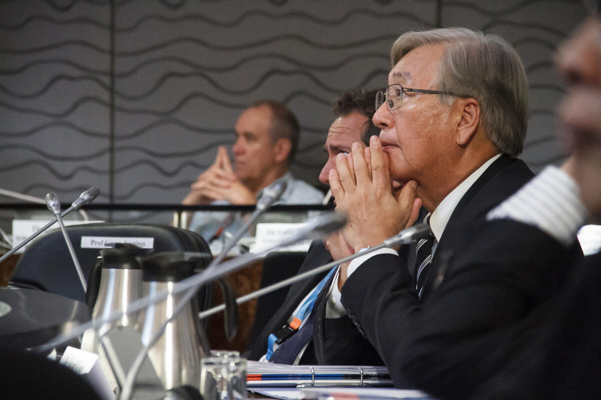 Dr Shin Young-soo, WHO Regional Director for the Western Pacific, listens to the presentation at the plenary session of the First Regional Forum of WHO Collaborating Centres in the Western Pacific, at the Regional Office for the Western Pacific, Manila, Day 2,13-14 November 2014.