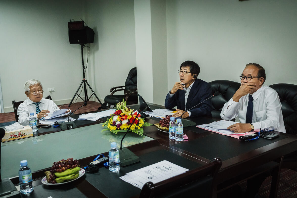 Meeting at Ministry of HealthFrom left to right: Secretary of State Professor Eng Huot, WHO representative Dr Dong Il Ahn, Secretary of State Heng Tai Kry