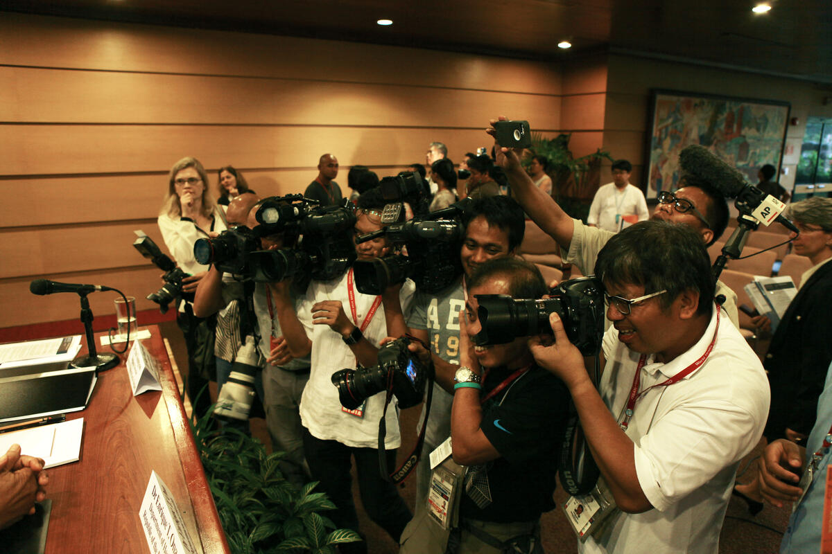 Members of the media at the press conference for the 65th session of the WHO Regional Committee for the Western Pacific, Philippine International Convention Center, Manila, Philippines, 13–17 October 2014.