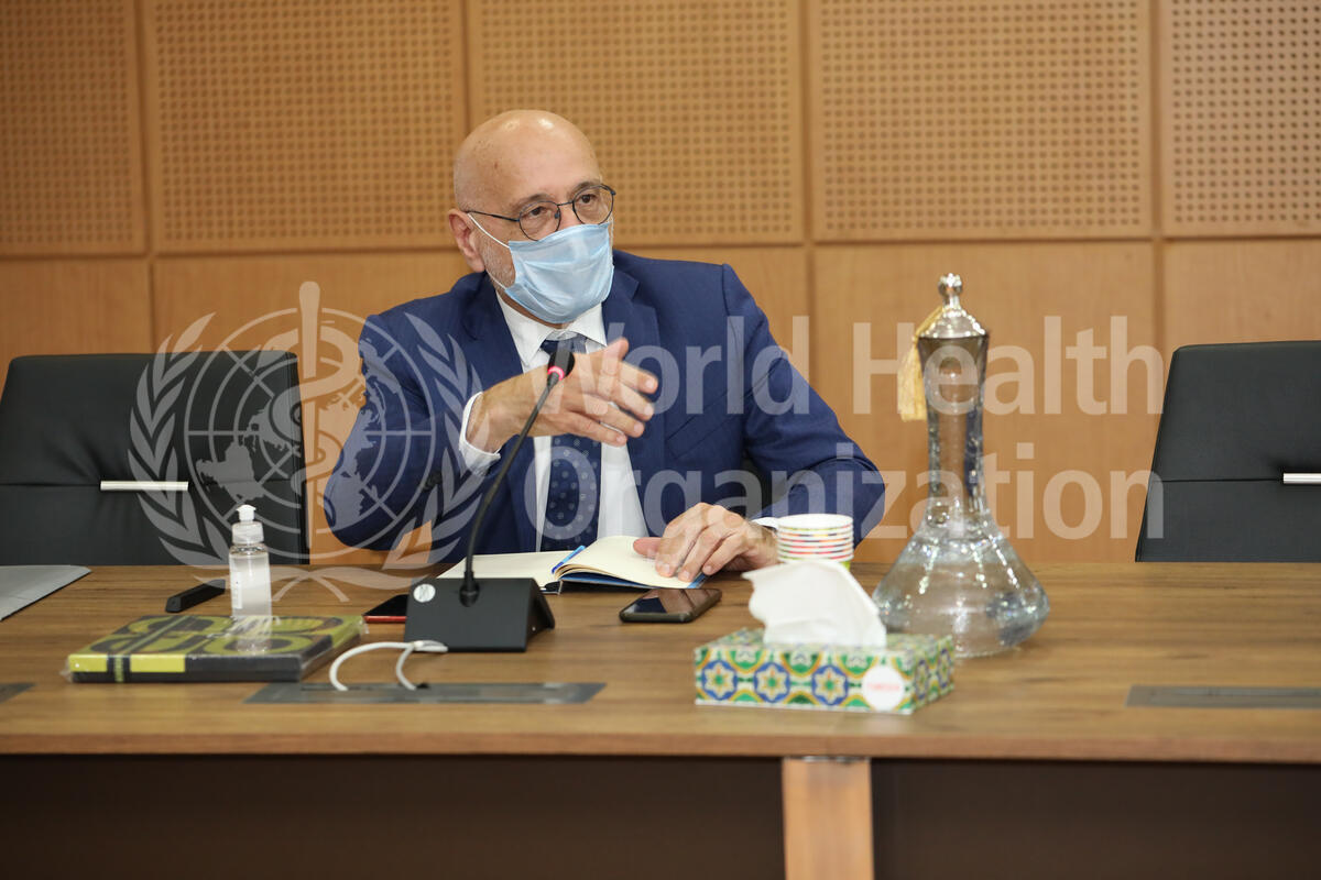As part of the COVID-19 pandemic response, a team of experts from the WHO's Regional Office for the Eastern Mediterranean (EMRO) carried out a six-day mission in Tunisia. The mission's goal was to support the response to the epidemic in priority areas.The delegation was led by Dr Rana Hajjeh, Director of Programme Management at EMRO, accompanied by five WHO technical experts primarily responsible for health emergencies, communicable and noncommunicable diseases, risk communication and community engagement.During the mission, WHO teams worked closely with their counterparts in the Ministry of Health to assess the situation, identify challenges and make recommendations.This visit began with a first meeting at the Ministry of Health and continued with visits to various health facilities. Each visit was followed by a situation assessment meeting.An evaluation report and recommendations were presented to the Minister of Health at the end of the mission. Dr Yves Souteyrand, WHO Representative in Tunisia .-Title of WHO staff and officials reflects their respective position at the time the photo was taken.