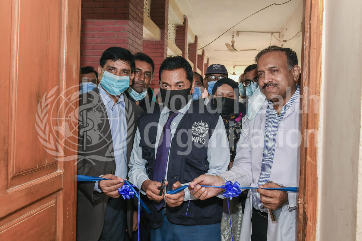WHO Pakistan Representative Dr Palitha Mahipala inaugurating the WHO Emergency Operation Centre.Title of WHO staff and officials reflects their respective position at the time the photo was taken.
