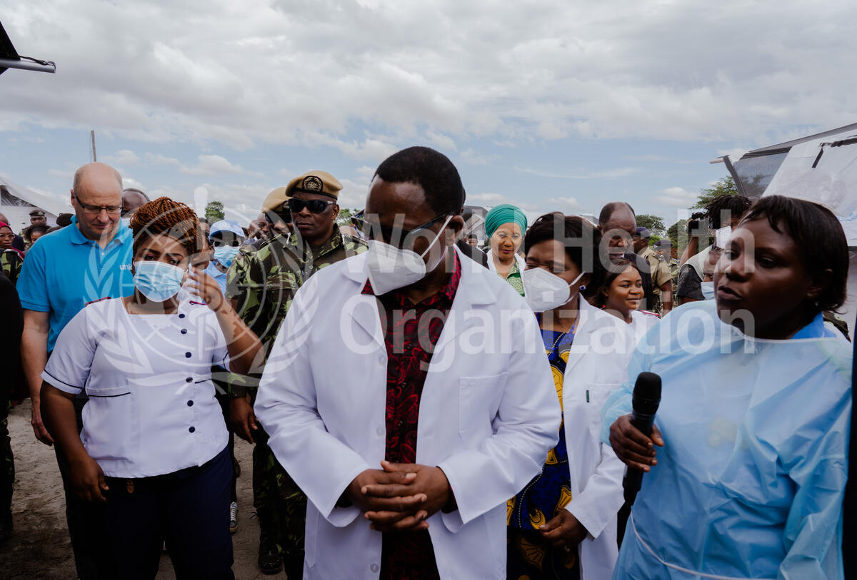 H.E President of Malawi, Dr Lazarus McCarthy Chakwera, visits a cholera treatment centre that WHO helped revamp in one of Lilongwe's cholera hotspots.