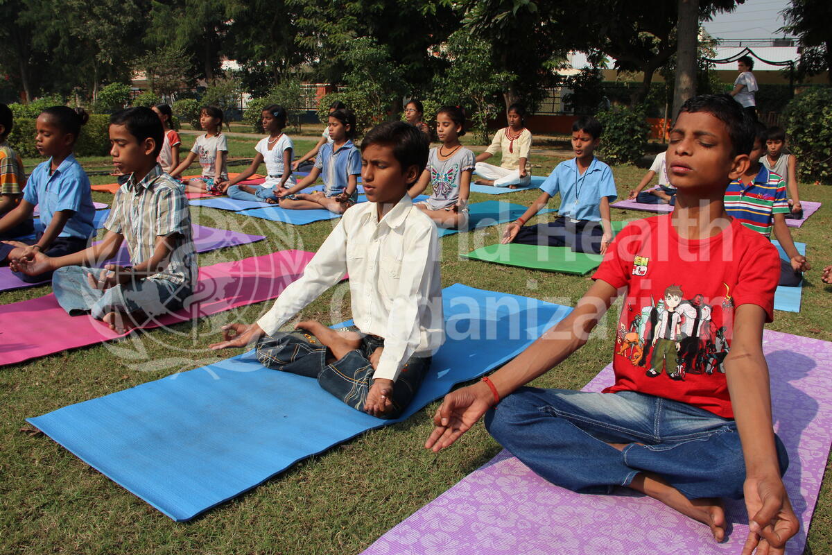 Free yoga classes for underprivileged children by NGO Harmony House, India.