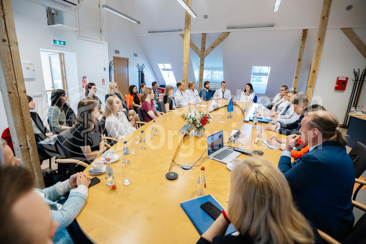 WHO Regional Director for Europe, Dr Hans Kluge and with Dr Hosam Abu Meri, Minister of Health meeting doctors at Pauls Stradins Clinical University Hospital and the Young Doctors Association.