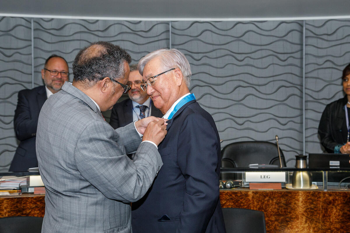 Day 1: Dr Tedros Adhanom Ghebreyesus, WHO Director-General, awards Dr Shin Young-soo, WHO Regional Director for the Western Pacific, the WHO medal for his years of service and leadership to the organization, during the 69th session of the WHO Regional Committee for the Western Pacific at the Regional Office, Manila, Philippines, 8 to 12 October 2018.