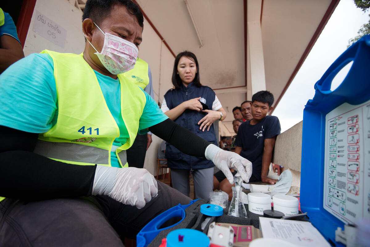WHO staff works with the Ministry of Health to check the water quality.The Ministry of Health with support from UNICEF and the World Health Organization has launched the first cholera vaccination campaign in Lao PDR targeting flood-affected communities from 23 to 30 August 2018. Read more: Lao PDR’s First Ever Cholera Vaccination Campaign Launched in Flood-hit Sanamxay District