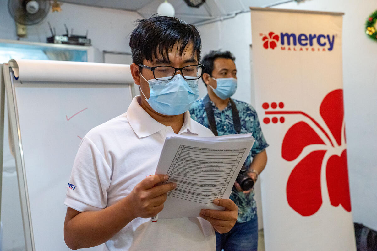 Malaysian Medical Relief Society (MERCY Malaysia) representatives conduct the community awareness and engagement session.MERCY Malaysia has built trust by serving refugees and asylum seekers with inexpensive or free health care, health education and promotion, mental health care, childhood vaccination and other services.Recognising the vulnerability of refugees during the pandemic and the importance of reliable information from a credible source, WHO is supporting MERCY Malaysia’s risk communication and community engagement work with more than 130,000 refugees and asylum seekers. This is part of WHO’s Civil Society Organization (CSO) Initiative, under which the Organization is supporting a total of 11 agencies in Malaysia, Papua New Guinea and the Philippines.