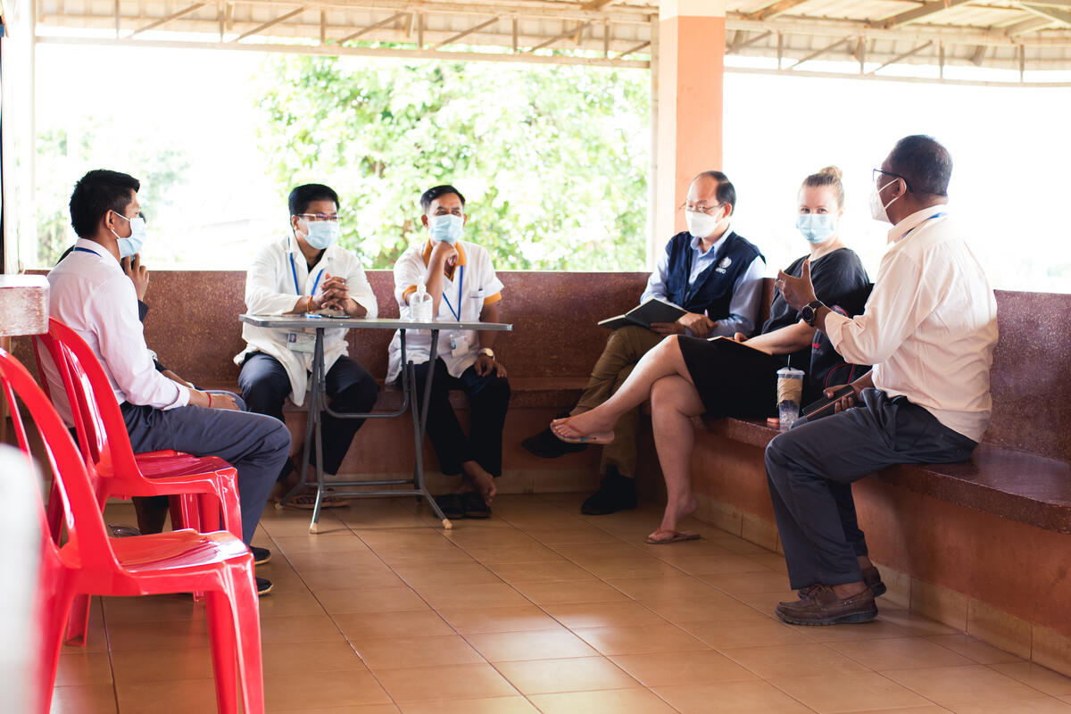 Members of WHO Cambodia technical team for HIV, TB and Hepatitis interview health workers at the O’Chreada Health Centre to ascertain the effects tuberculosis in the community.