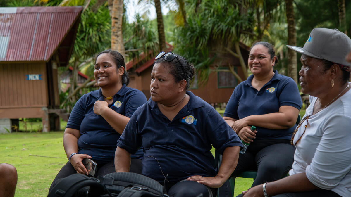 Members of Team Klemat, the Republic of Palau’s national Emergency Medical Team (EMT), debrief after carrying out a search and rescue mission during a simulated emergency preparedness exercise. Palau’s Ministry of Health and Human Services (MHHS) is working closely with WHO and the Government of Japan to support and strengthen the country’s emergency preparedness and response, including through the establishment of a national Emergency Medical Team (EMT) called Team Klemat.Palau’s EMT is named Team Klemat after the rope that holds the sails of the country’s traditional canoes – has been established to rapidly respond to sudden onset emergencies or disease outbreaks.(From left) Dr Rachel Arurang, Medical Doctor at Belau National Hospital; Minda Benjamin, Registered Nurse at Belau National Hospital; Tirisa Tirso, Medical Supplies Specialist at Palau Ministry of Health and Human Services; and Belinda Eungel, Infection Prevention Control (IPC) Nurse at Belau National Hospital.