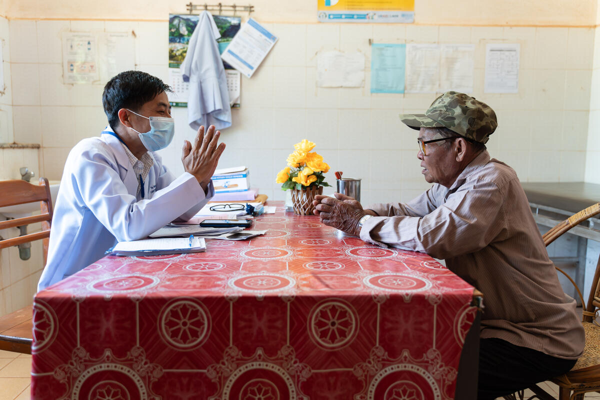 Mr Phai (78) visits Dr Amonexay for a checkup at Champasak District Hospital. Since 2017, National Health Insurance (NHI) scheme has been implemented in all Lao PDR provinces except Vientiane Capital. NHI implements a co-payment system throughout different health care levels (local, provincial, district and national levels). Pregnant women, children under 5 years old, monks and people holding a low-income card (issued by local authorities) are exempt for co-payment. Related: Lao Ministry of Health moves forward with National Health Insurance