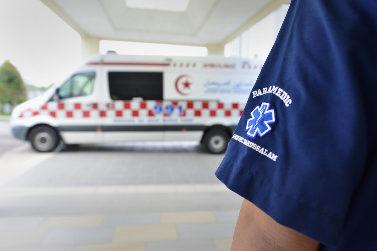 A paramedic stands by an ambulance for COVID-19 patients at the National Isolation Centre (NIC) in Tutong District, some 47km from Brunei's capital, Bandar Seri Begawan. The NIC has bed capacity of 296 following the completion of its new extension building that cost B$11 million donated by the people of Brunei.