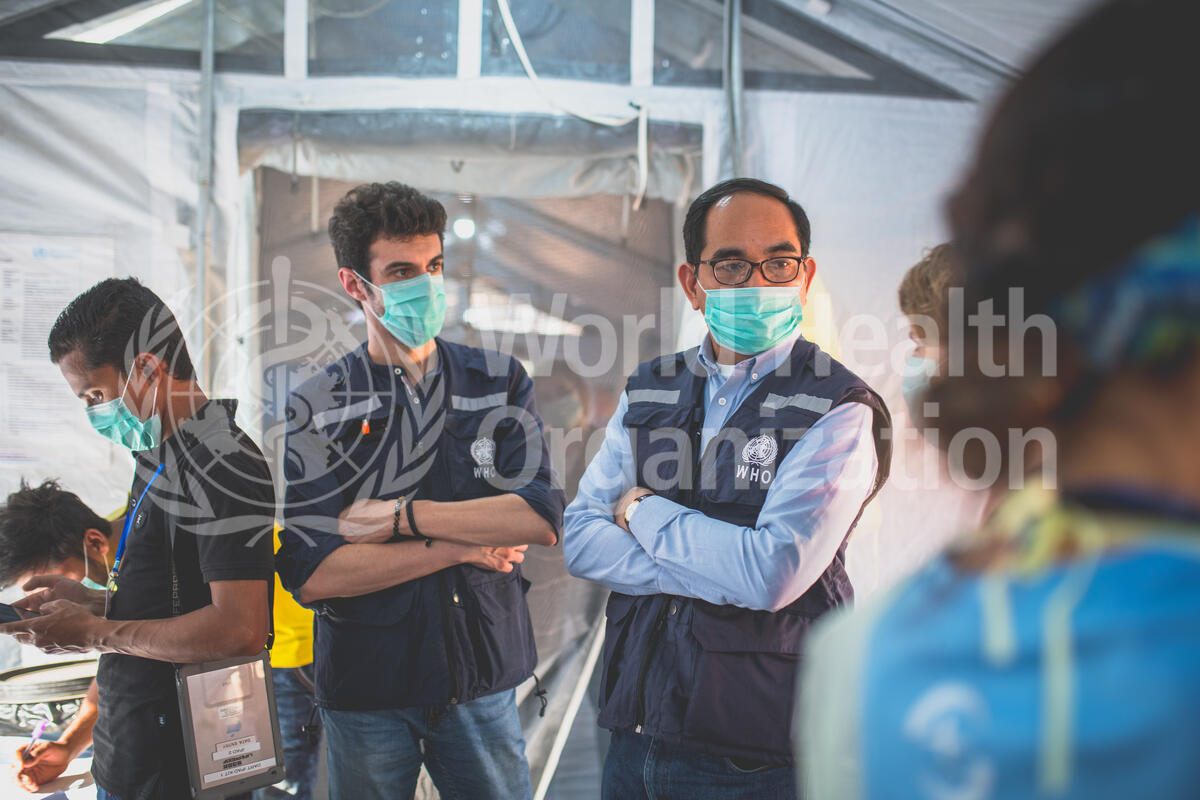WHO staff with other partners at the logistics base in Cox's Bazar, Bangladesh