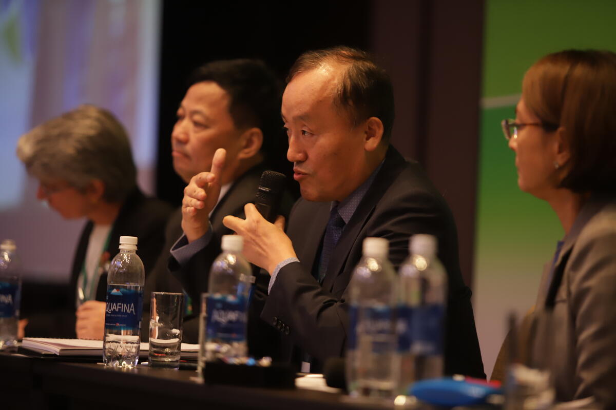 Panel discussion with the theme of "Working effectively at country level" with (from left) Dr Corinne Capuano, WHO Representative to the South Pacific and Director, Pacific Technical Support, Dr Liu Yunguo, WHO Representative to Cambodia, Dr Kidong Park, WHO Representative to Viet Nam, Dr Ying-Ru Lo, WHO Representative to Malaysia, Brunei Darussalam and Singapore and three WHO Collaborating Centers providing their insights during the Third Regional Forum of WHO Collaborating Centres in the Western Pacific, held in Ho Chi Minh City, Viet Nam on 22–23 November 2018.